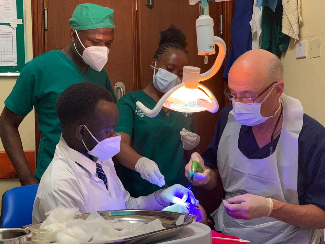 Die neueste Erweiterung ist ein zahnärztlicher Behandlungsraum im OP-Gebäude mit einem Behandlungsstuhl aus chinesischer Produktion und einer Basisausstattung für einfache Behandlungen. Röntgendiagnostik ist nicht vorhanden. Kollege Tadeo Ahimbibisibwe ist als »Dental Officer Public Health« fest angestellt und gibt sich größte Mühe, die anfallenden Behandlungen zu meistern. Seine universitäre Ausbildung ist eine Weiterbildung für Krankenpflegepersonal, mit Schwerpunkt auf Zahnextraktionen und einfachen konservierenden Maßnahmen, Prothetik mit abnehmbaren Kunststoffprothesen, sowie einfache Kronen- und Brückenversorgungen.