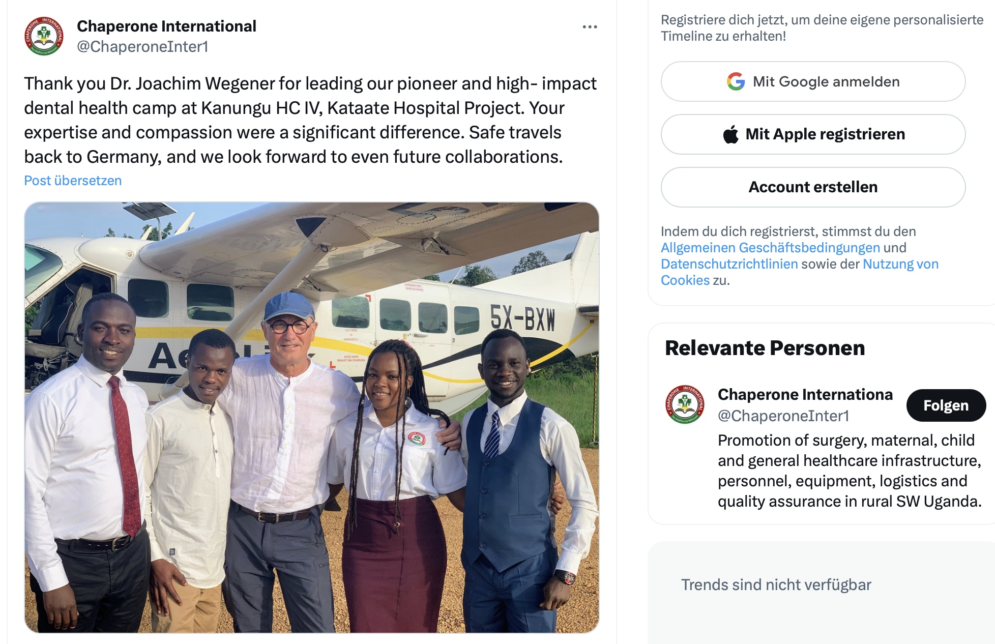 Notwendig sind auch die organisatorische Weiterentwicklung der Zahnarztpraxis, Verbesserung von Hygienemaßnahmen und vor allem Ausbildung von Kollegen Tadeo und seiner Assistentin Brenda. Brenda ist Krankenschwester ohne spezifisch zahnmedizinische Weiterbildung oder Erfahrung. Wie wir alle wissen, ist unsere zahnärztliche Tätigkeit ohne kompetente Assistenz nur sehr eingeschränkt möglich! In diesem Zusammenhang wäre zu überlegen, eine Zahnmedizinische Fachangestellte aus Deutschland einzubeziehen, um Assistenzkräfte vor Ort anzuleiten. Weitere Aufgabengebiete wären Praxisorganisation, Lagerhaltung, Behandlungsvorbereitung und Nachbereitung, Hygiene und Sterilisation, Arbeitsergonomie in der Behandlungsassistenz. Bei einem zukünftigen Einsatz in Kanungu ist geplant, die notwendigen Materialien für Amalgamfüllungen im Seitenzahnbereich mitzubringen. Kollege Tadeo soll in dieser Technik ausgebildet werden. Hierdurch ist eine zuverlässigere Versorgung von Seitenzahnkavitäten zu erwarten. Weiterhin sollten einfache endodontische Behandlungen mit überschaubarem Aufwand ermöglicht werden. Prothetische Maßnahmen wie Zahnpräparation, Abformtechnik, einfache Registrate und Okklusionskonzept, Einpassen und Eingliederung von Zahnersatz sollten dringend optimiert werden ohne übertriebene Perfektion. Dr. Joachim Wegener, im Januar 2024