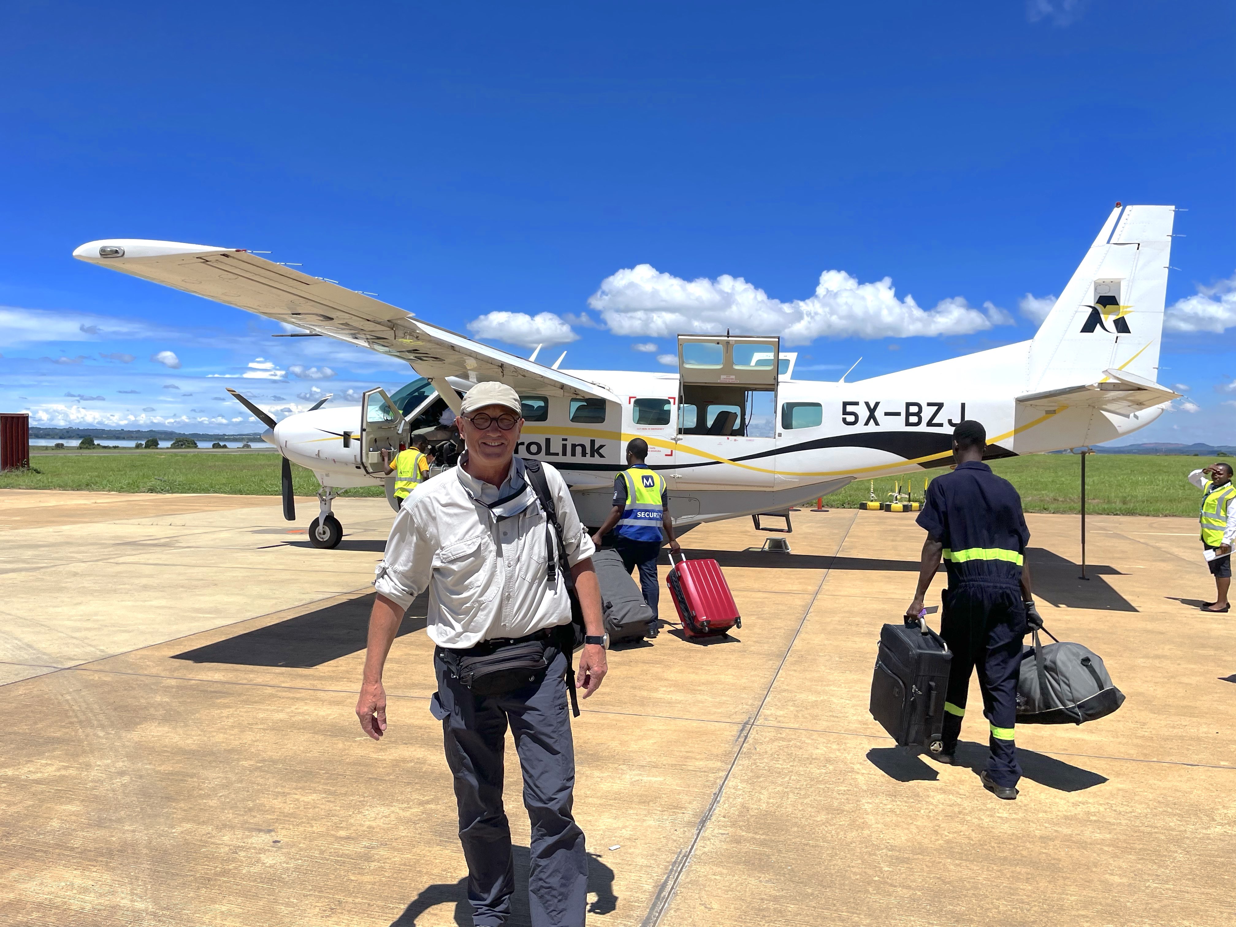 Die Anreise erfolgte mit Turkish Airlines über Istanbul nach Entebbe mit Zwischenlandung in Kigali / Ruanda. In Entebbe ist eine angenehme Stadt am Victoria See, ca. 35 km entfernt von der Hauptstadt Kampala, dort eine Übernachtung im Hotel. Am nächsten Tag Inlandsflug mit Aerolink nach Kihihi im Südwesten von Uganda, Flugzeit ca. 1,5 Stunden.