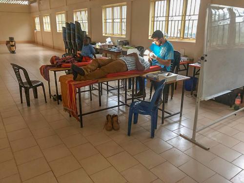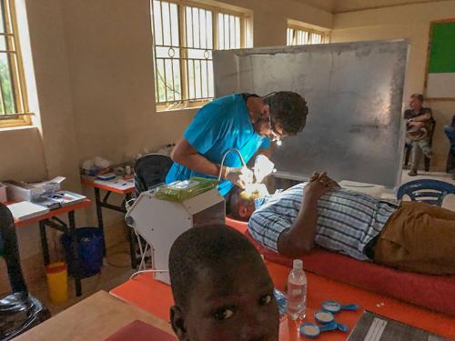 Unsere beiden Zahnärzte behandelten zwei Wochen lang 365 Waisenkinder und die Mitarbeiter. Die Photovoltaikanlage reichte gerade zum Betrieb unserer mobilen Einheit (gekocht wurde auf Holz). Auf zwei Liegen konnten die Patienten bequem im Oberkiefer behandelt werden, während die Gartenstühle für die Unterkieferbehandlungen für beide Teile sehr anstrengend waren.