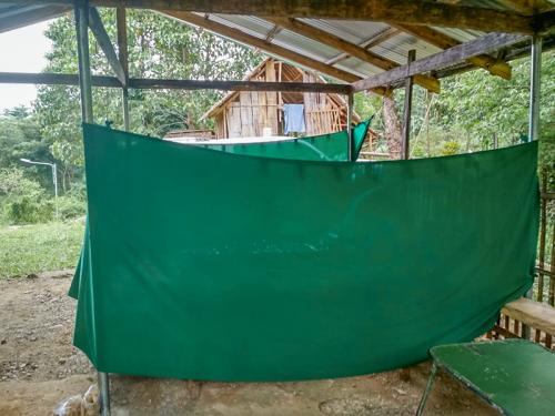 Unsere Arbeitsstätten waren sehr vielfältig. Häufig arbeiteten wir in Bambushütten, aber auch mal nur unter Wellblech, abgeschirmt durch Tücher, einmal tatsächlich auch in einer Kirche neben dem Altar.