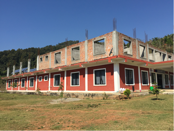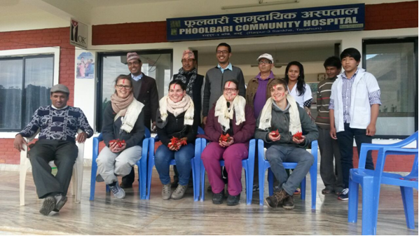 Am nächsten Morgen holte uns Subina, die Schwiegertochter des Gründers des Krankenhauses der Phoolbaari e.V. (Tanka Poudel), in Pokhara ab und begleitete uns mit dem Jeep nach Sankhe. Dort angekommen wurden wir mit einer Begrüßungszeremonie empfangen, jeder der Mitarbeiter stellte sich uns vor, schenkte uns Blumen und malte uns einen roten Punkt auf die Stirn.