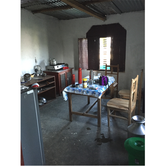 Uns wurde ein Gästehaus zur Verfügung gestellt, welches in den Bergen ca. 45 Gehminuten von dem Krankenhaus entfernt liegt. Es ist sehr einfach ausgestattet, fließendes warmes Wasser ist nicht verfügbar, abends mussten wir uns mit einer bucket shower begnügen. Eine kleine Küche mit zwei Gaskochplatten ist vorhanden, falls man Tee kochen möchte.