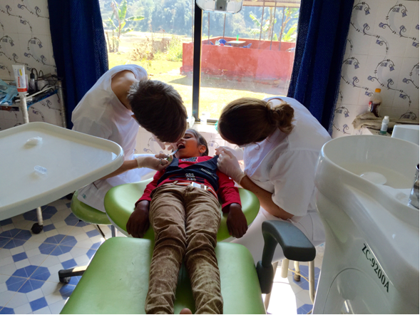 Wir (3 Zahnärztinnen und ein Zahnmedizinstudent) begaben uns Ende Februar auf die große Reise nach Nepal. Am Flughafen in Frankfurt verabschiedete uns Tanka Poudel, der deutsche Ansprechpartner des Krankenhauses in Sankhe. Ein Spendenkoffer mit Instrumenten und Materialien von Dentists&Friends machte uns bei Air China anfangs Schwierigkeiten, letztendlich organisierte aber eine freundliche, engagierte Mitarbeiterin der Airline den kostenlosen Transport nach Kathmandu. Dort angekommen erlebten wir direkt das lebhafte Treiben der Hauptstadt. Überall stehen viele Taxis bereit, mit denen man nach erfolgreichem Verhandeln preisgünstig auch längere Strecken zurücklegen kann. Bereits zu diesem Zeitpunkt wurde uns bewusst, welchen Luxus wir in Deutschland genießen, damit darf man in Nepal nicht rechnen. Es fängt bei den Autos an, die in Deutschland niemals den TÜV bestehen würden, geht weiter mit den holprigen Straßen. Auch der Zustand und die Erwartungen an das Hotel sollten von vornherein begrenzt sein, wenn man sich für Nepal als Reiseland entscheidet. Man muss sich darauf einstellen, dass es nur 10-12 Stunden Strom am Tag gibt, auf fließendes warmes Wasser muss man selbst in den Hotels meistens verzichten. Diese Umstände schränkten uns auch in unserem Arbeitsalltag im Krankenhaus in Sankhe ein.