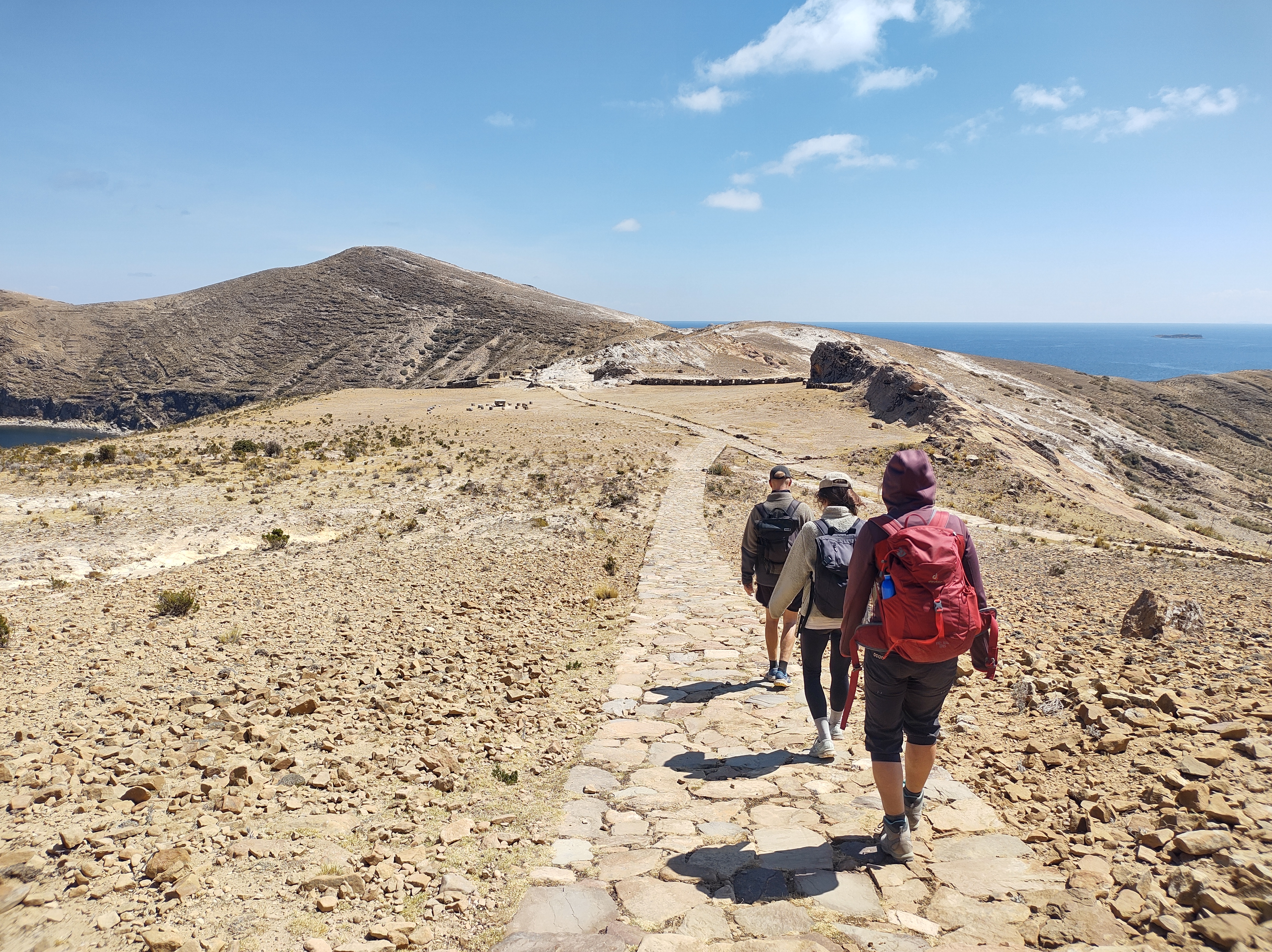 Die Wochenenden verbrachten wir damit die Insel zu erkunden. Hier wanderten wir einen Tag in den Süden der Insel nach Yumani, schauten uns die alten Inkaruinen an und genossen ein leckeres Mittagessen mit bester Aussicht auf den See. Am nächsten Tag erkundeten wir dann noch den wunderschönen Norden. Hin ging es über die Berge bis zu den Inkaruinen im Norden. Zurück entlang der Küste über Challapampa. Unser Ziehhund »Pedro«, welcher eines Morgens einfach da war und uns für den Rest des Aufenthaltes nicht mehr von der Seite wich, begleitete uns die gesamte Wanderung.